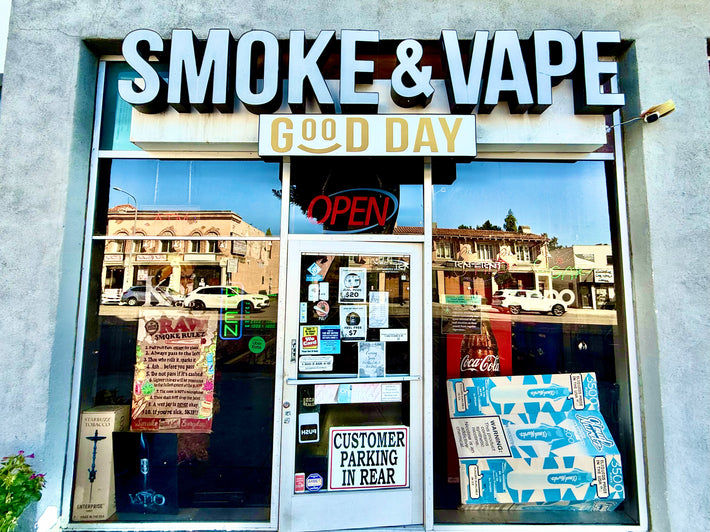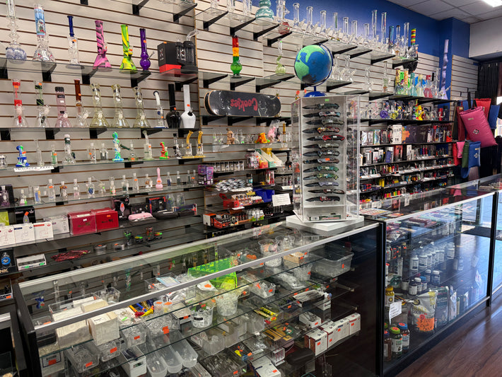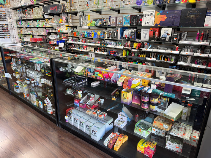Covers categories like vapes, e-liquids, hookahs, cigars, smoking accessories, and glassware.
